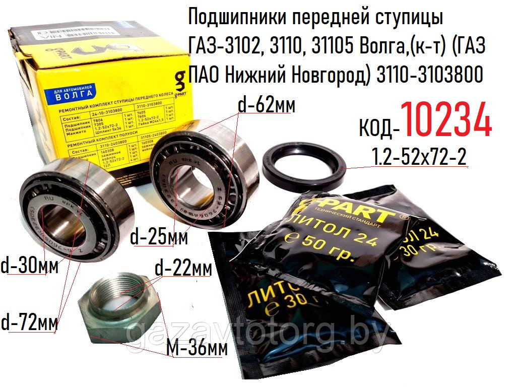 Подшипники передней ступицы ГАЗ-3102, 3110, 31105 Волга,(к-т) (ГАЗ ПАО Нижний Новгород) 3110-3103800