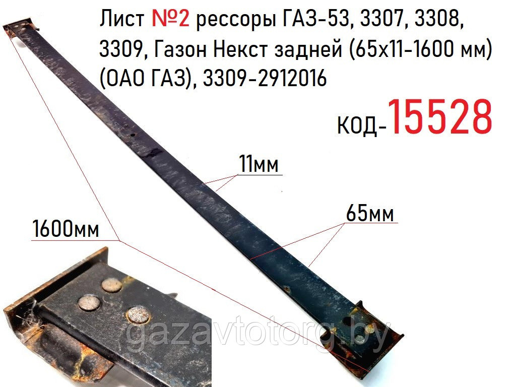 Лист №2 рессоры ГАЗ-53, 3307, 3308, 3309, Газон Некст задней (65х11-1600 мм) (ОАО ГАЗ), 3309-2912016