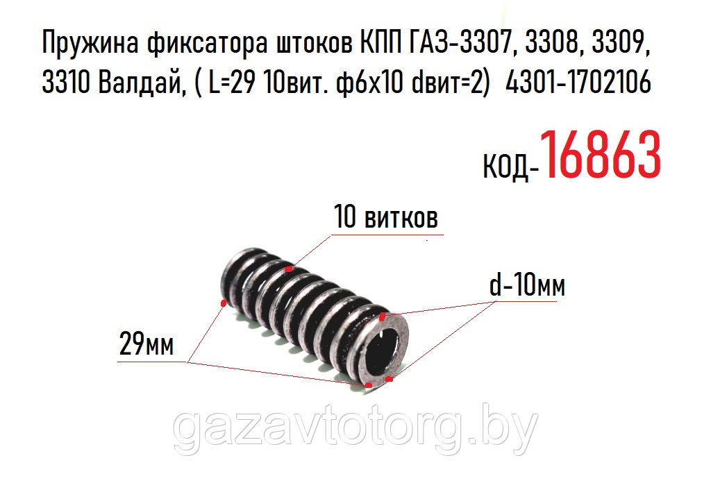 Пружина фиксатора штоков КПП ГАЗ-3307, 3308, 3309, 3310 Валдай, ( L=29 10вит. ф6х10 dвит=2) 4301-1702106