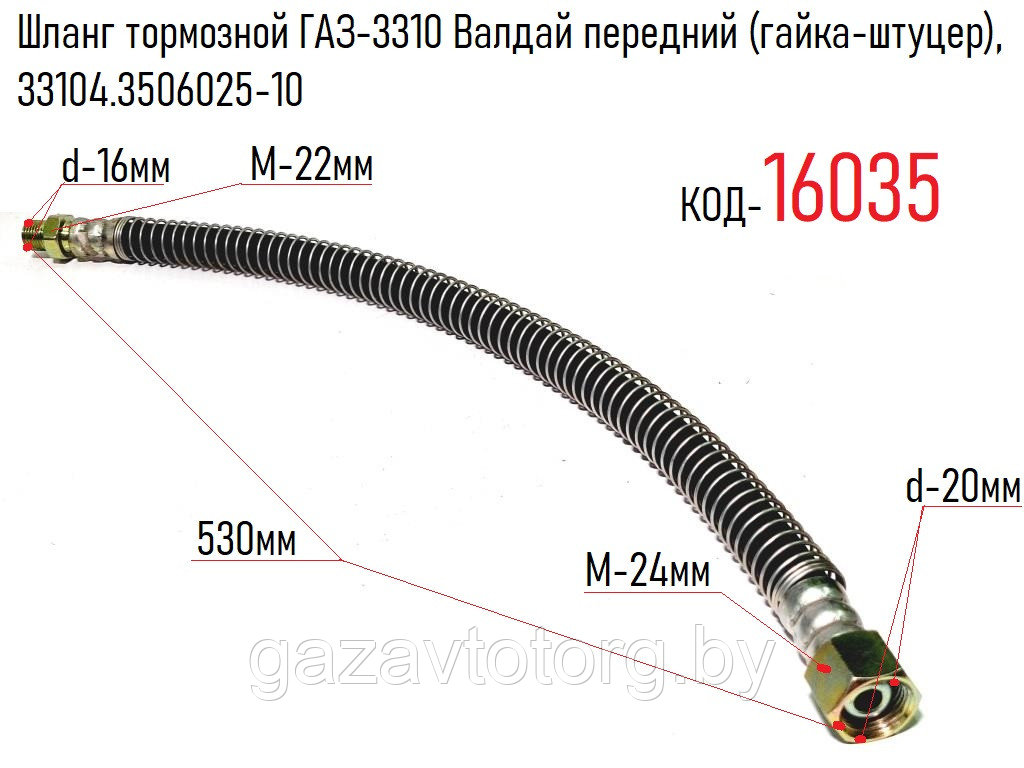 Шланг тормозной ГАЗ-3310 Валдай передний (гайка-штуцер), 33104.3506025-10