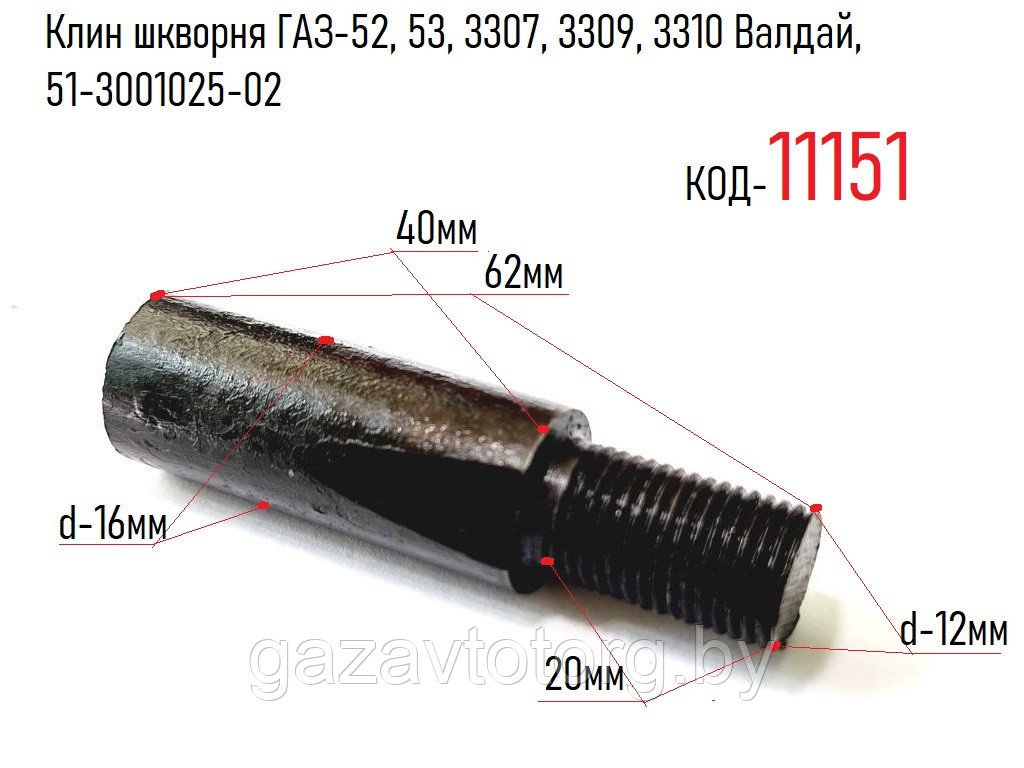 Клин шкворня ГАЗ-52, 53, 3307, 3309, 3310 Валдай, 51-3001025-02