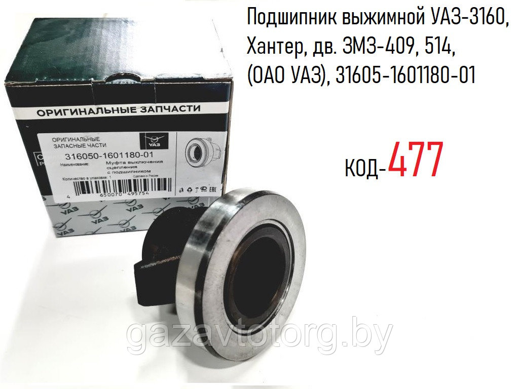 Подшипник выжимной УАЗ-3160, Хантер, дв. ЗМЗ-409, 514, (КПП 5ст. вилка н/обр.) (ОАО УАЗ), 31605-1601180-01