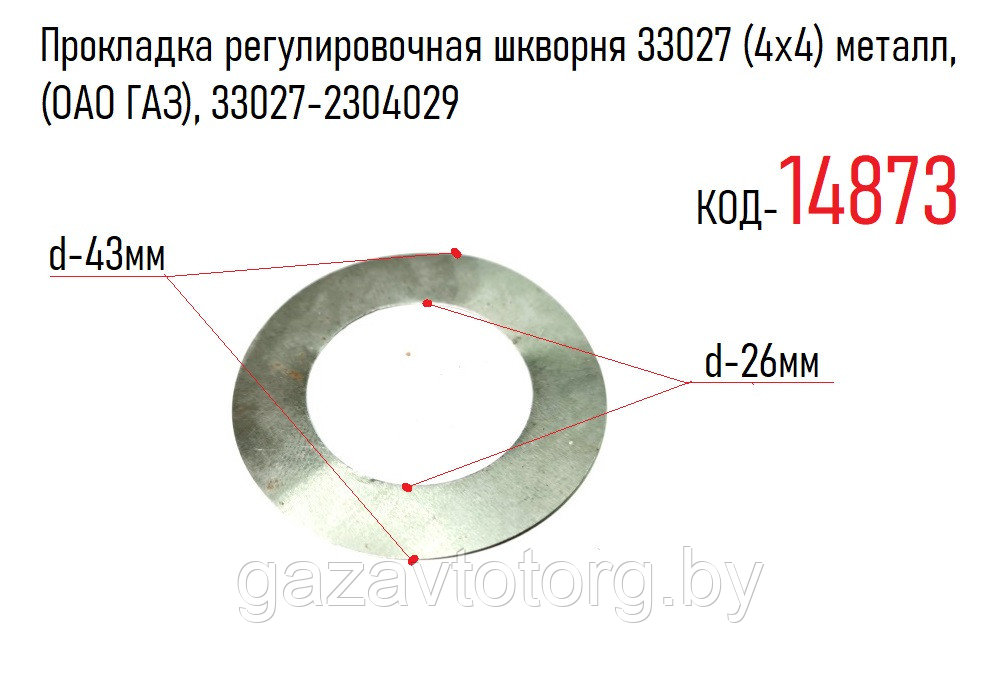 Прокладка регулировочная шкворня 33027 (4х4) металл, (ОАО ГАЗ), 33027-2304029